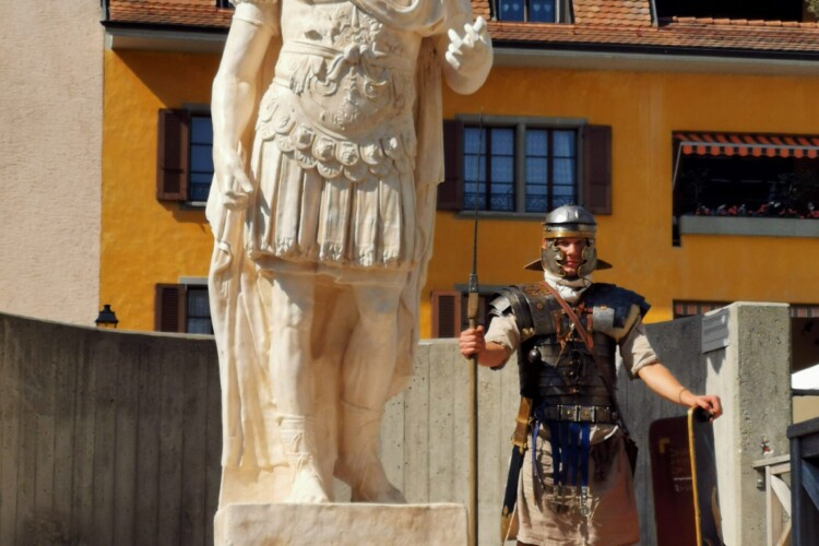 - Mandat* pour la restauration de la statue de Jules César (ciment et poudre de marbre) du Musée Romain de Nyon comprenant la reconstruction des doigts manquants des deux mains, ainsi que le moulage et tirage d’une nouvelle statue, en résine. (été 2019)